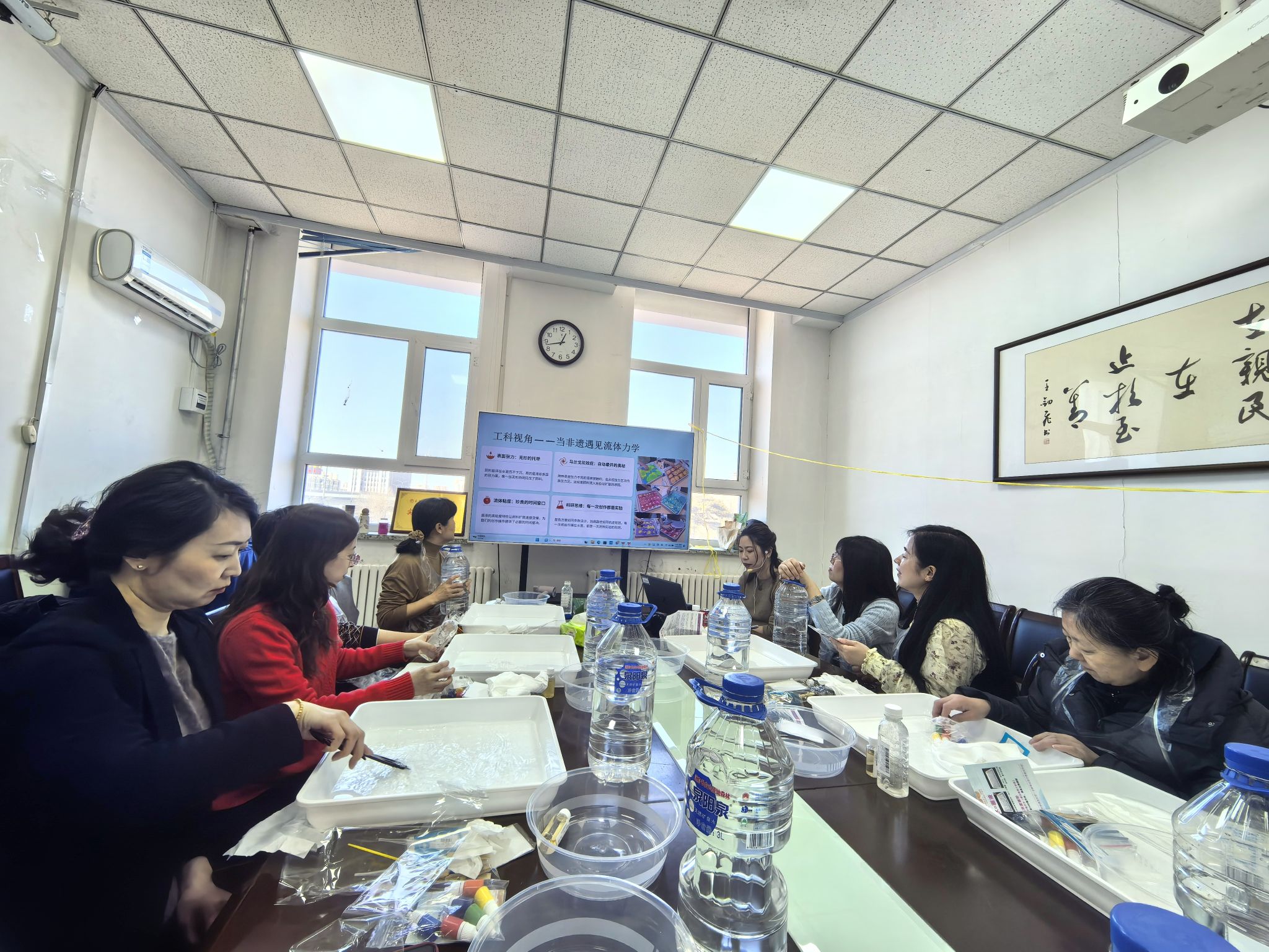 女教职工欢聚一堂,在色彩与水的交融中,亲手绘制独一无二的丝巾,感受传统非遗技艺的独特魅力。