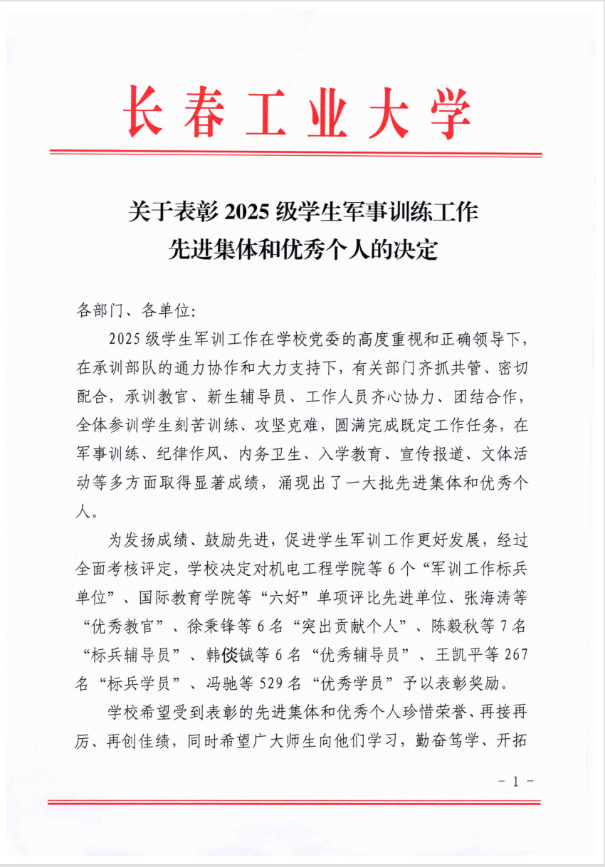 表彰2025级学生军事训练工作先进集体和优秀个人的决定》,sm调教视频